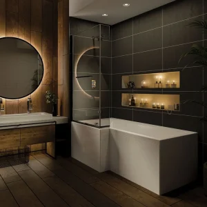 If you’re making a real design statement, consider an illuminated mirror in a brushed‑bronze finish—it brings light and finishes together beautifully. A mirror from the illuminated mirror collection with brushed‑bronze frame will reflect the warmth of your taps and fixtures while offering practical, fog‑free lighting for daily routines.