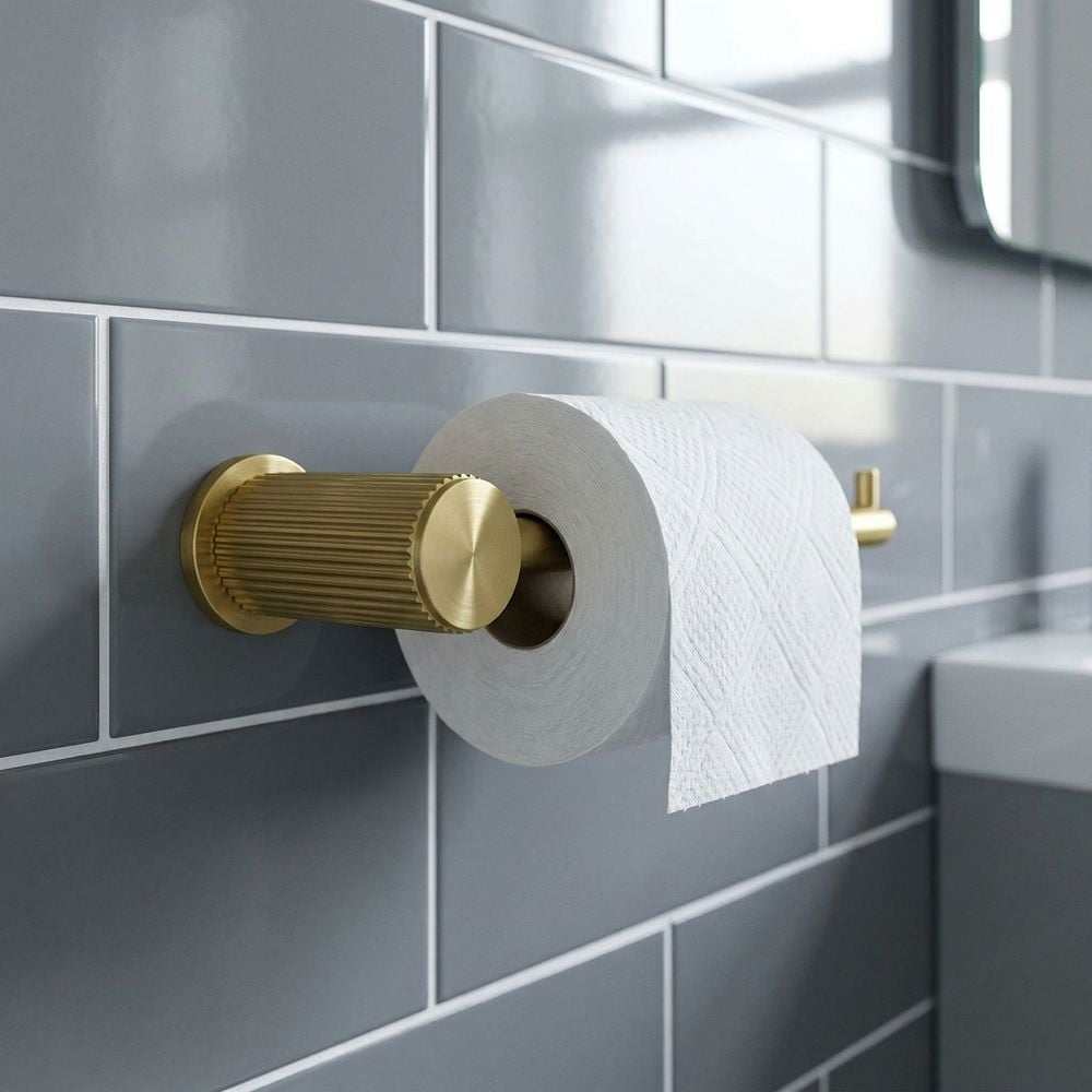 Melbourne Brushed Brass Wall-Mounted Bathroom Toilet Roll Holder – Stylish & Practical