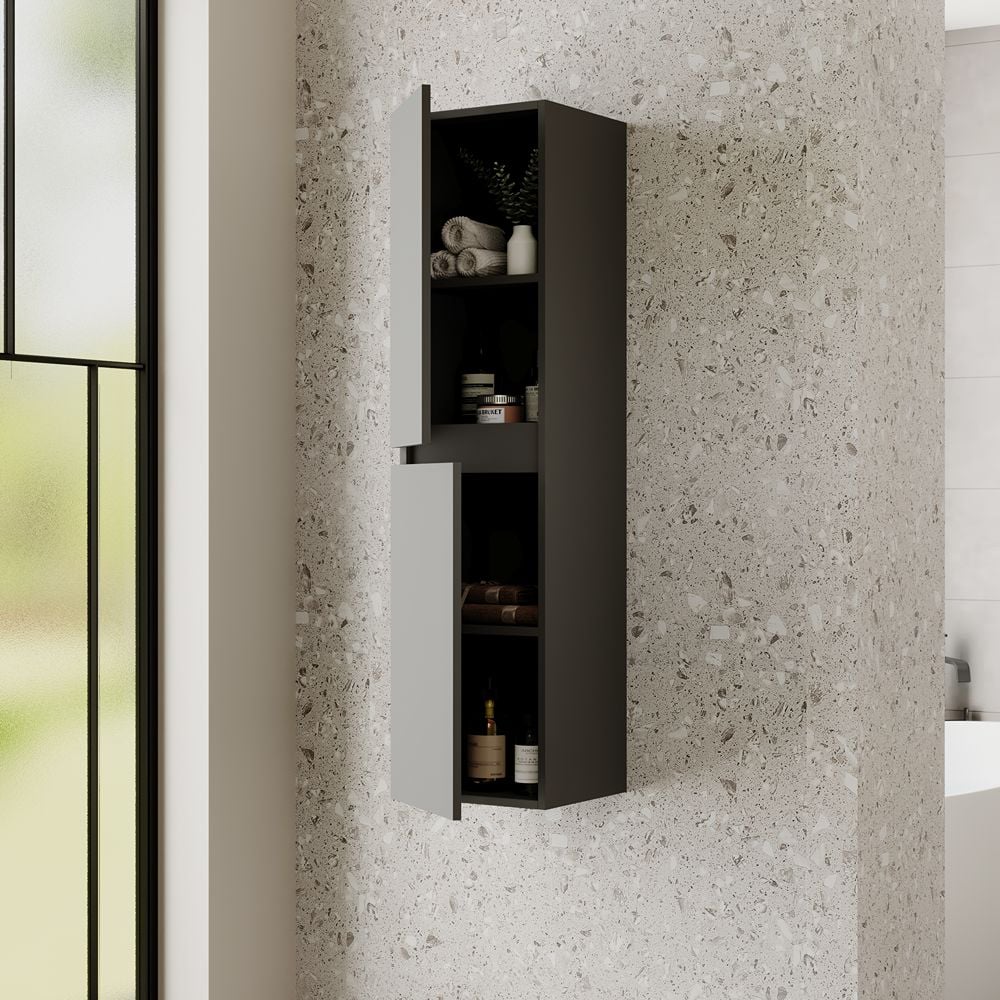 Ella 1400mm Matt Anthracite Wall Hung Tall Bathroom Cabinet – Soft Close Doors & Lifetime Guarantee