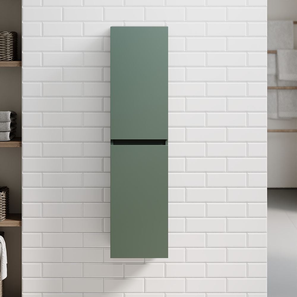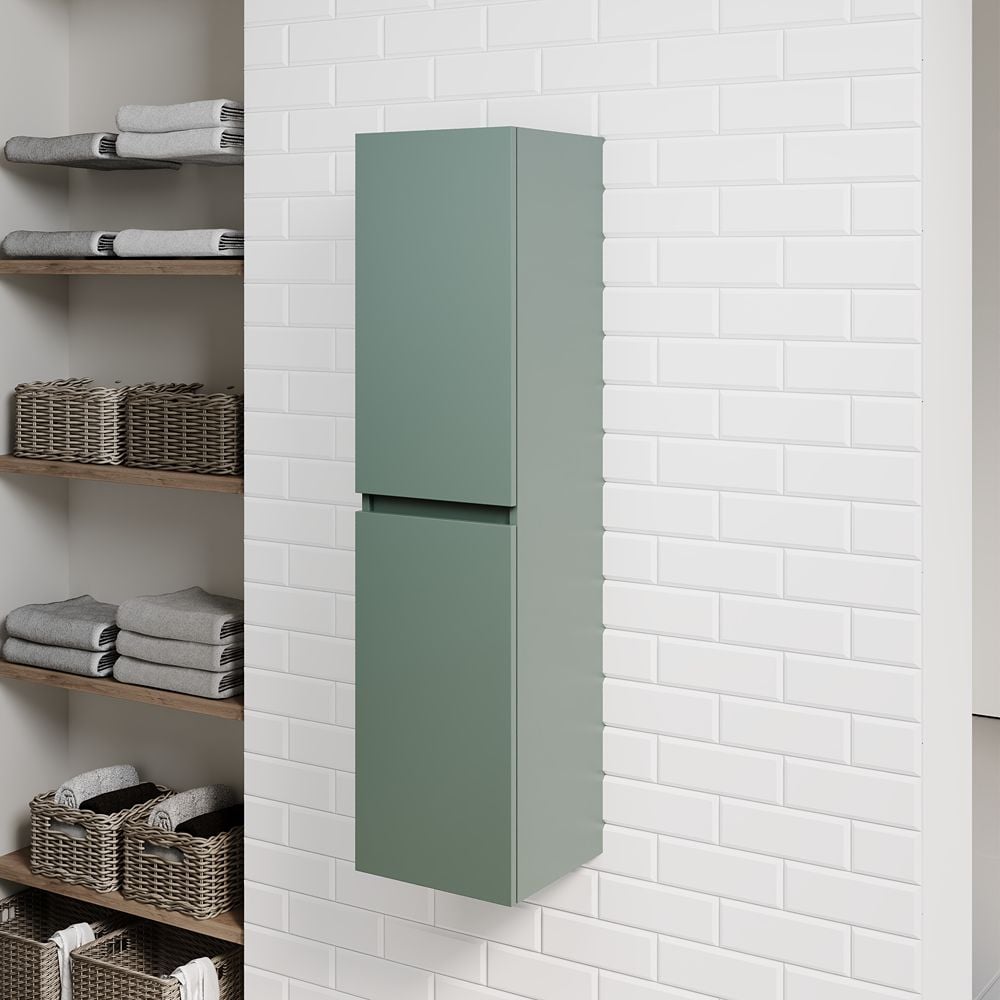 Aubrey Matt Reed Green Tall Boy Bathroom Cabinet 300mm x 1200mm – Wall Mounted, Soft Close & Lifetime Guarantee