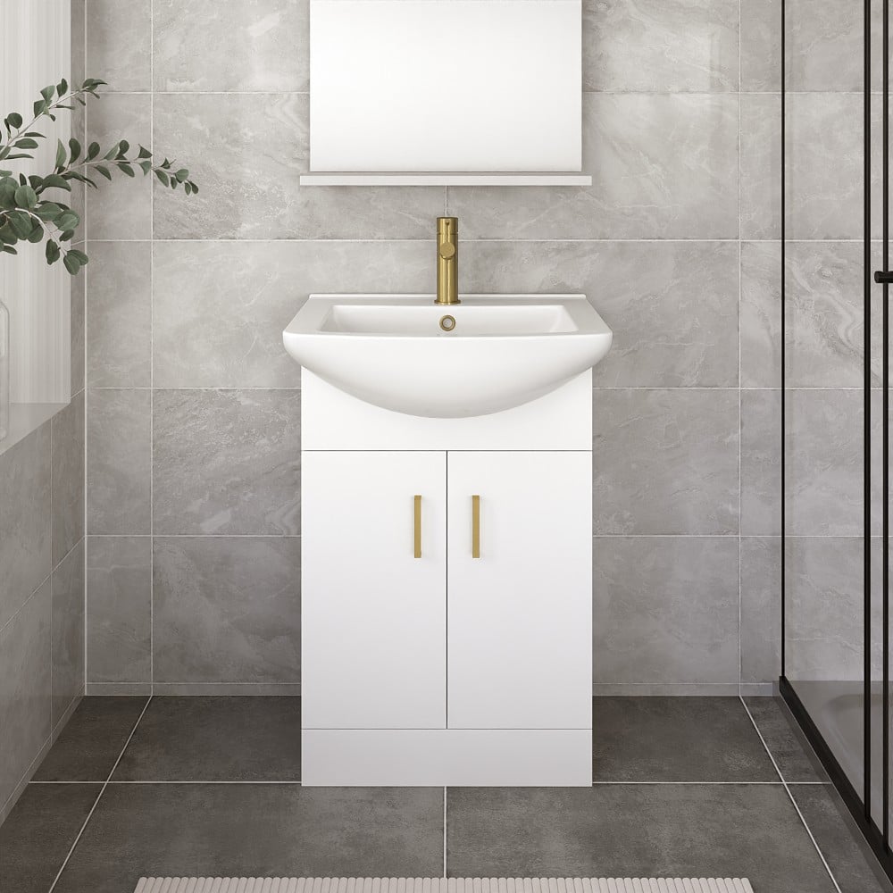 Nell 650mm 2-Door Vanity Unit & Ceramic Basin with Brushed Brass Handles