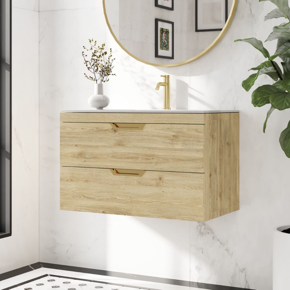 Aubrey 800 mm Davos Oak Wall-Hung Vanity Unit with Basin – Optional Handle Colours