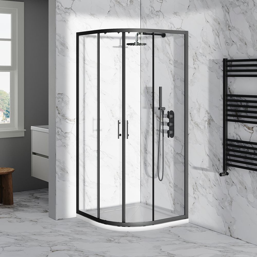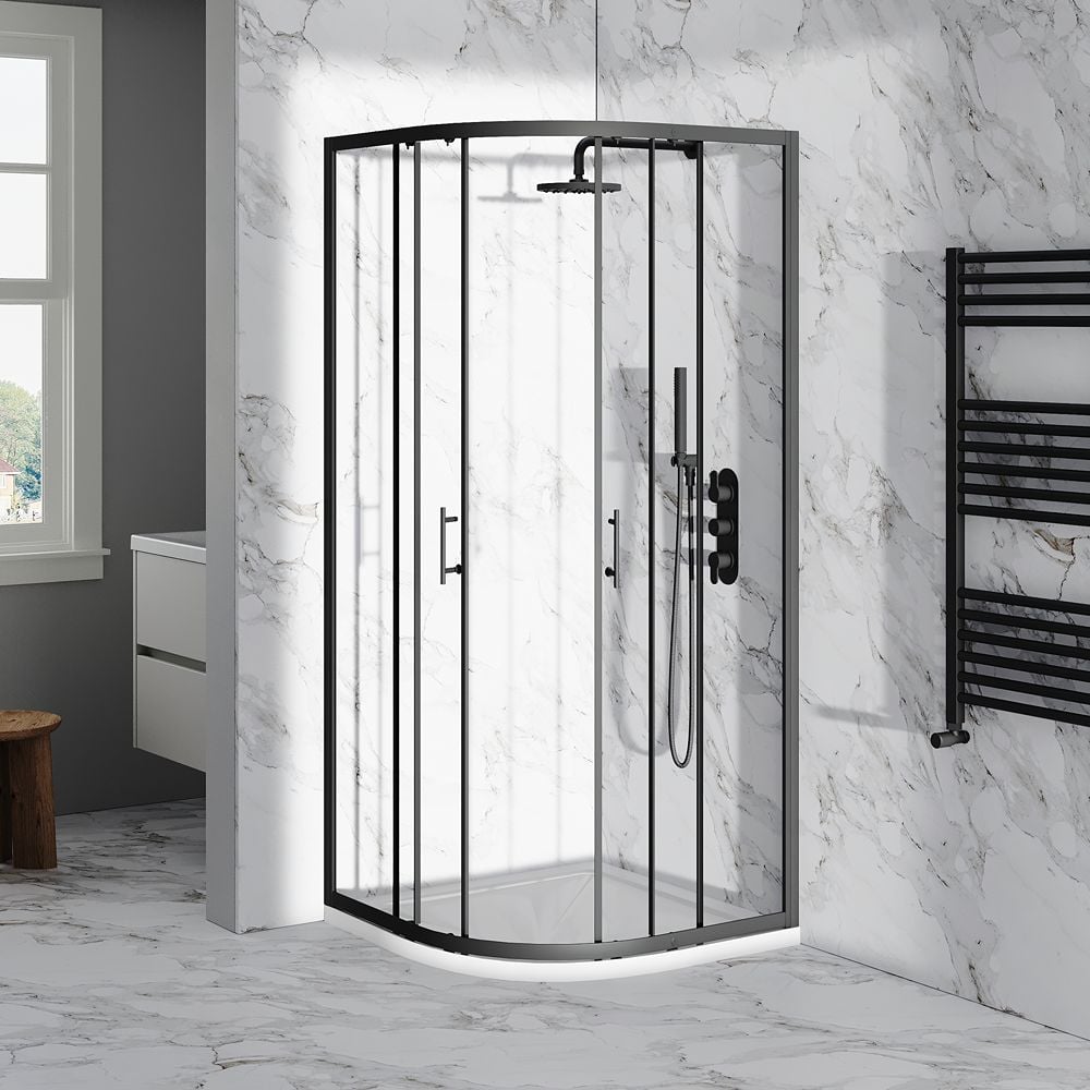 Litchfield Glide Matt Black Double Door Quadrant Shower Enclosure 800 x 800mm – 6mm Glass & Lifetime Guarantee