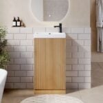Upgrade your cloakroom with the stylish and practical Flauto Mini 460mm Fluted Country Oak Vanity Unit & Basin, designed to maximise space while delivering a modern, high-quality finish.