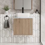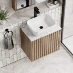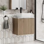 Beyond its visual appeal, the Scudo Alfie 600mm Fluted Sonoma Oak Single Drawer Vanity Unit & Countertop is designed with practicality in mind. Its compact size makes it suitable for smaller bathrooms, ensuring you don’t have to sacrifice style for space. The combination of modern and retro elements sets a new standard in bathroom design, allowing you to create a stunning focal point in your home.