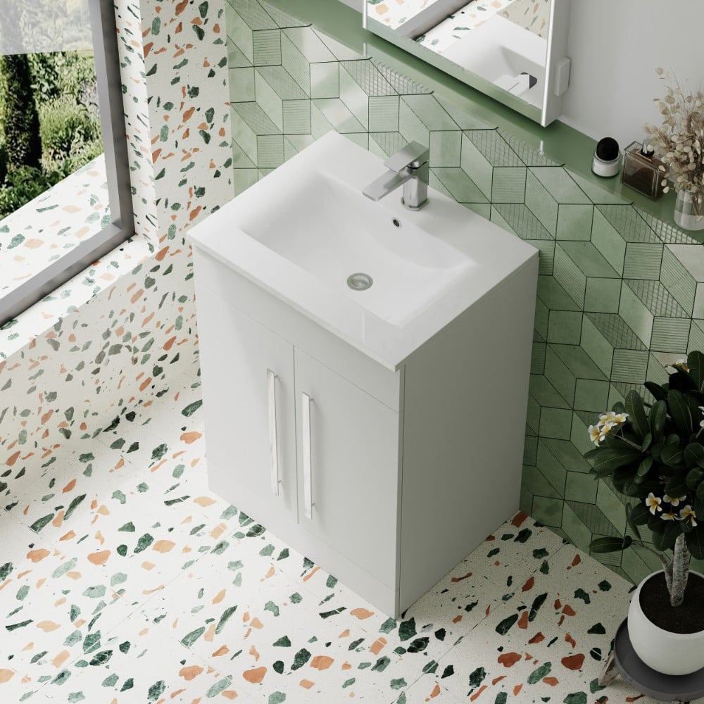 • 600mm floor-standing vanity unit with integrated basin