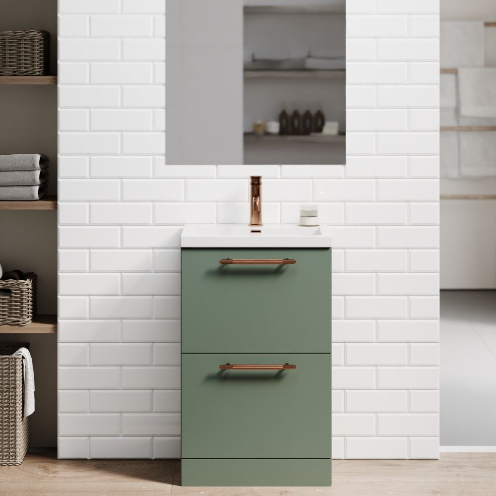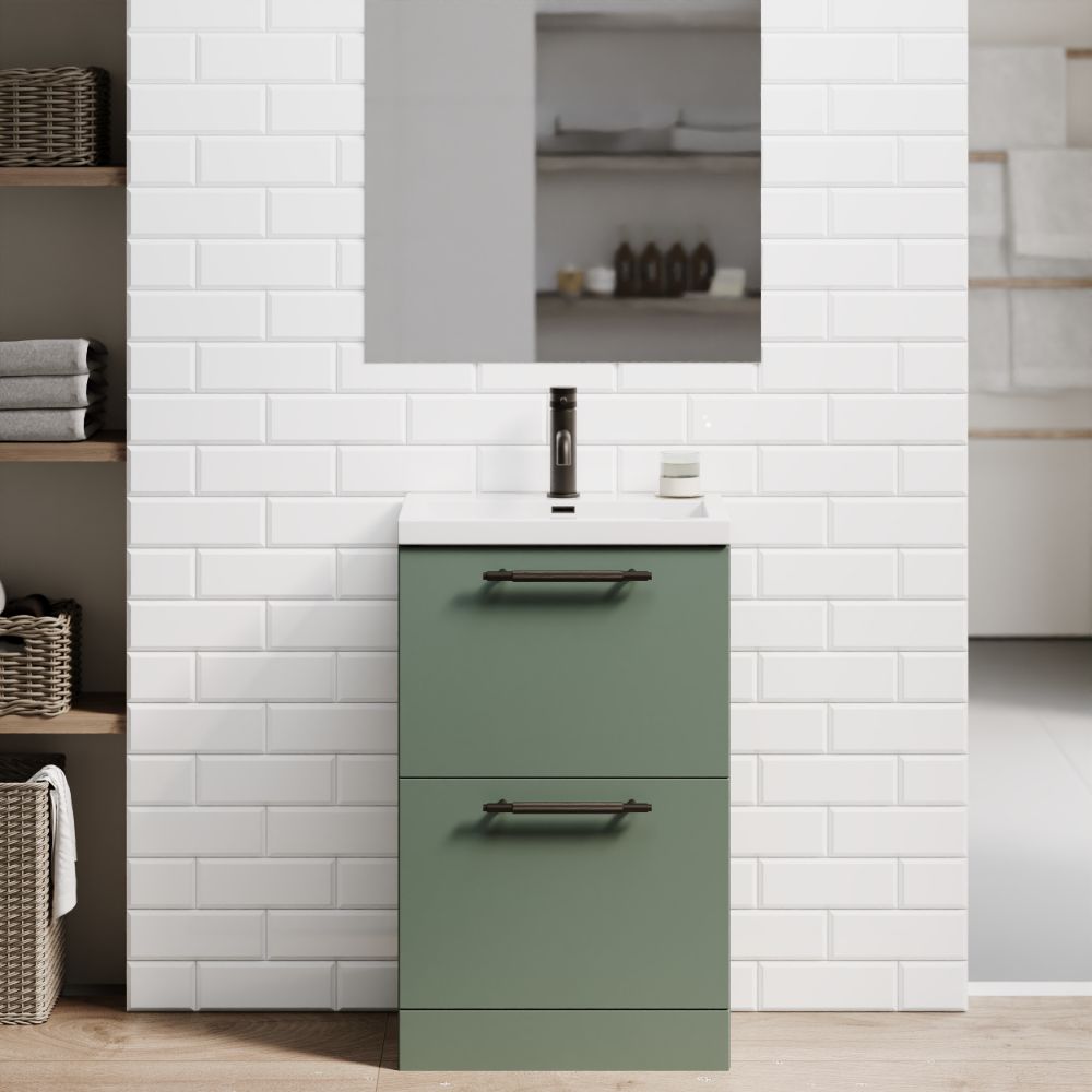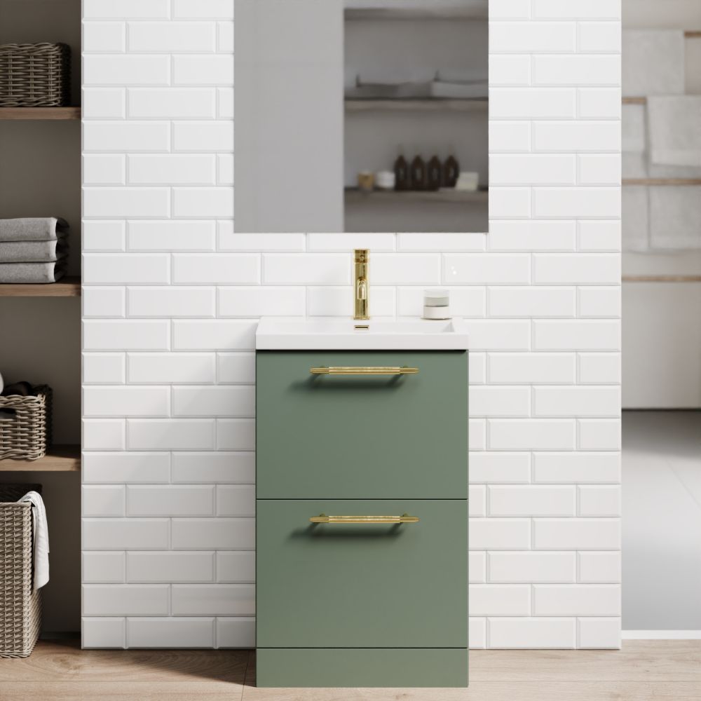 Blake 500mm 2 Drawer Reed Green Floor standing Vanity Unit & Basin