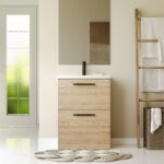 Transform your bathroom into a serene oasis with the Davos Oak 600mm two-drawer vanity unit and basin. This stylish yet highly functional centrepiece elevates the overall aesthetic of your space while providing the practicality that modern bathrooms require. With its compact dimensions, this vanity unit is ideal for small to medium-sized bathrooms, making it a perfect choice for urban living or cosy homes.