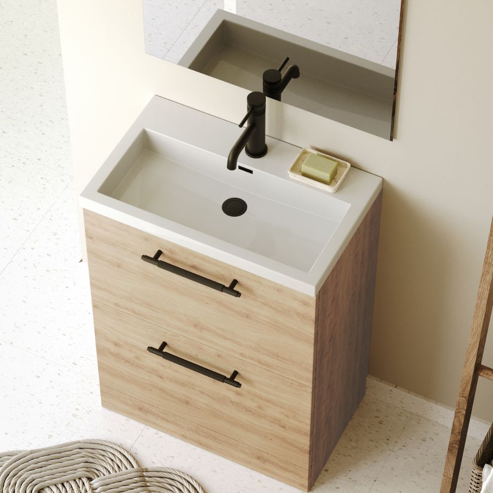 Blake 600mm floor-standing vanity unit in Davos Oak