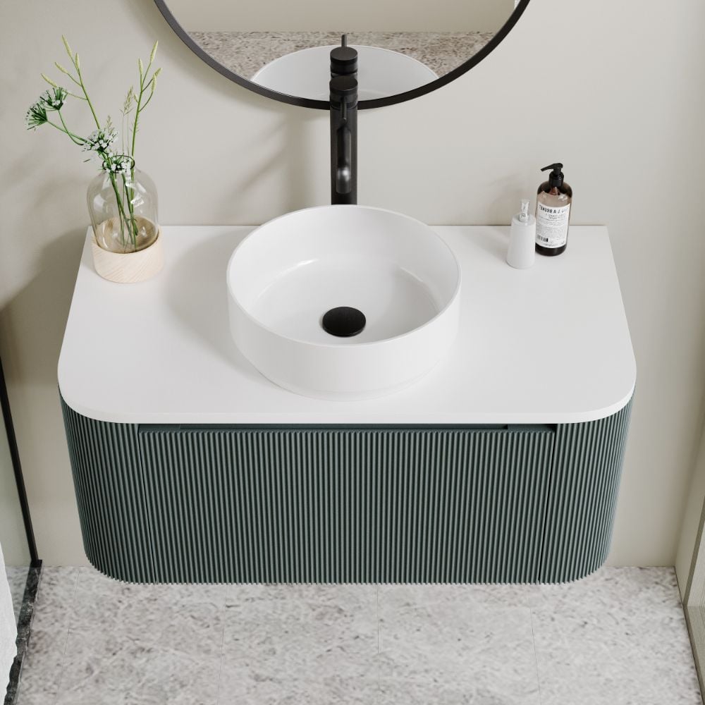 Upgrade your bathroom with the Flauto 870 mm Sage Green Fluted Wall-Hung Vanity Unit, a striking piece that blends premium craftsmanship with modern design. Its luxurious fluted front adds depth, texture, and elegance, making it the perfect centrepiece for both contemporary and traditional interiors.