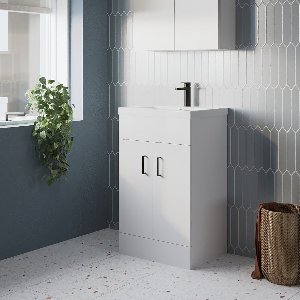 Bethany 500mm 2-Door Vanity Unit & Ceramic Basin with Brushed Brass Handles