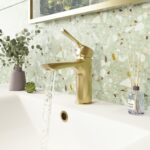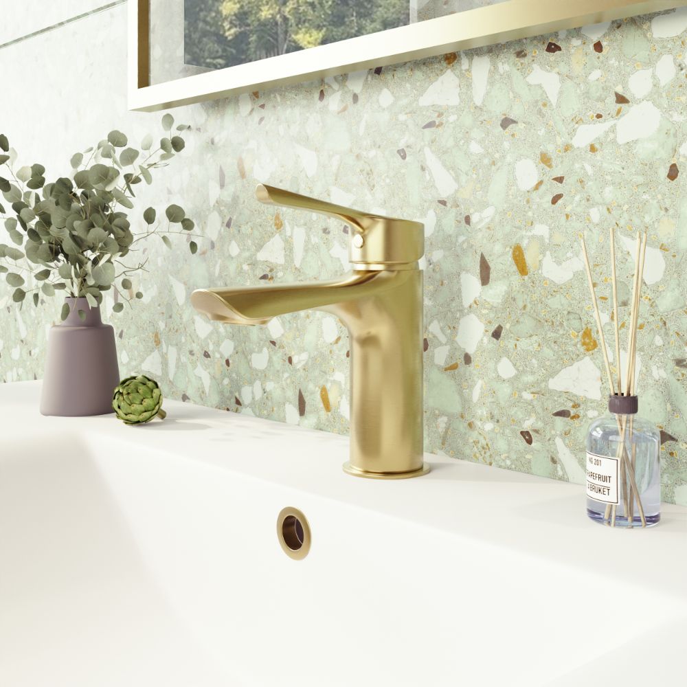 Elevate your bathroom with the Nefyn Brushed Brass Monobloc Basin Mixer Tap, now enhanced with a streamlined push-down waste. Its luxurious brushed brass finish brings timeless elegance to cloakrooms and modern bathrooms alike. The push-down waste not only improves functionality but adds a sleek, integrated look to your basin area. Designed for smooth, drip-free control, the 35 mm ceramic disc cartridge operates from a low of 0.2 bar, ensuring compatibility with gravity-fed and low-pressure systems.