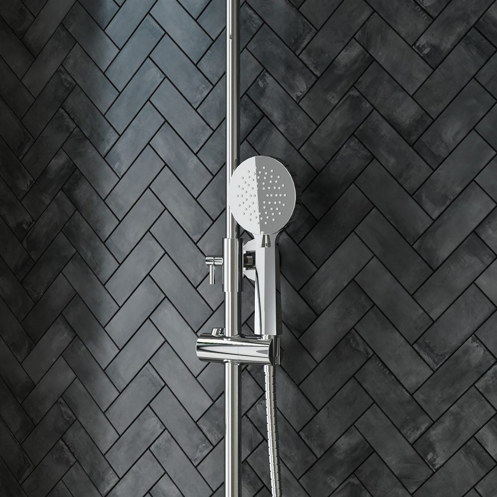 The thermostatic valve ensures a consistently enjoyable water temperature and includes cool-touch safety, protecting against sudden temperature changes. The telescopic riser rail enables height adjustment to suit every user, and easy-clean rubber nozzles on both heads make maintenance a breeze.