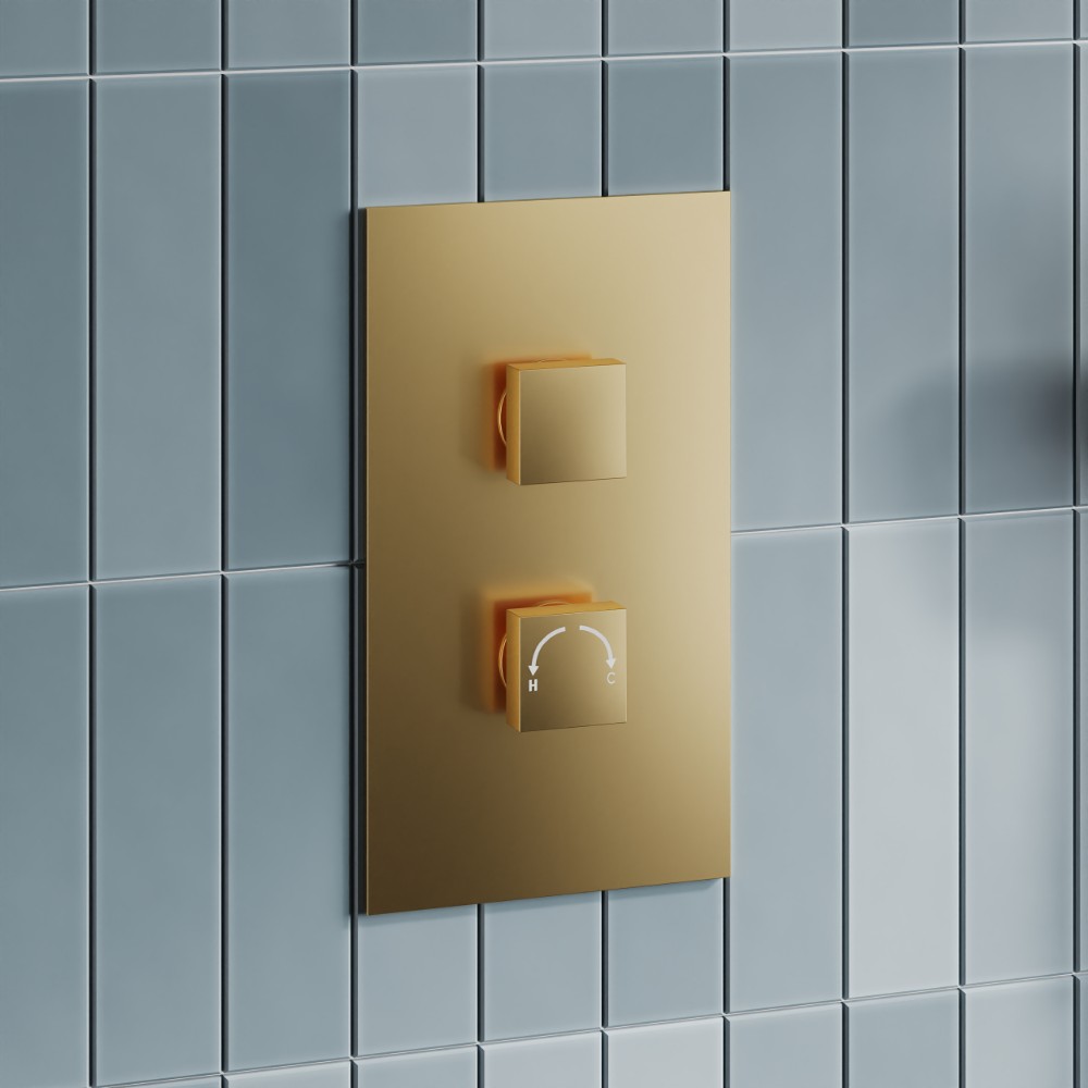 The Tailored Brushed Brass Square Thermostatic 2 Outlet Concealed Shower is the perfect addition to your bathroom. This shower system combines style and functionality, providing a luxurious showering experience. The brushed brass finish adds a touch of elegance and sophistication to any bathroom decor. With its concealed design, this shower system offers a sleek and seamless look, making it an excellent choice for modern bathrooms. The thermostatic feature ensures a consistent water temperature, giving you peace of mind while showering. The two-outlet design allows you to switch between different shower functions, providing versatility and convenience. Crafted with precision and attention to detail, this shower system is built to last. The square shape adds a contemporary touch, while the tailored design adds a unique flair. Installation is a breeze, thanks to the concealed design and included instructions. Upgrade your showering experience with our Tailored Brushed Brass Square Thermostatic 2 Outlet Concealed Shower. Enjoy the perfect style, functionality, and durability combination in one stunning shower system.