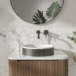 Elevate your vanity with the KOKO Gunmetal Fluted Countertop Basin. The sculpted fluted exterior and warm gunmetal sheen deliver an architectural focal point that coordinates effortlessly with modern brassware and accessories.