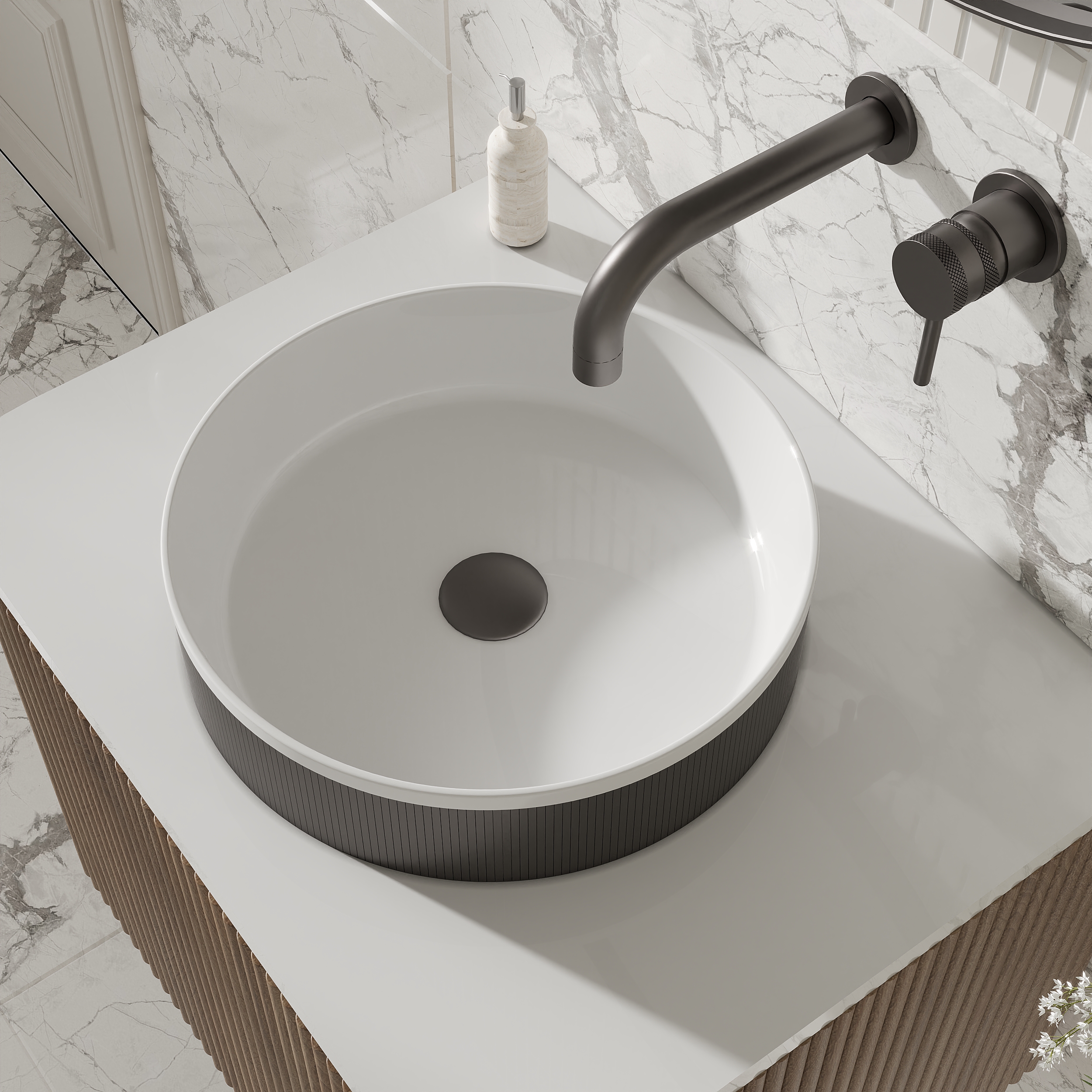Make a statement with the KOKO Gunmetal Fluted Round Countertop Basin (360 mm) — compact, low-profile and built with premium metallic materials: