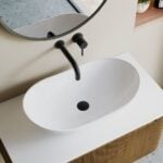 Made from high-quality vitreous china, it offers exceptional durability, resisting scratches, stains, and daily wear. The matt white surface enhances the basin’s sculptural shape while creating a soft, understated look that pairs perfectly with a variety of bathroom décors.