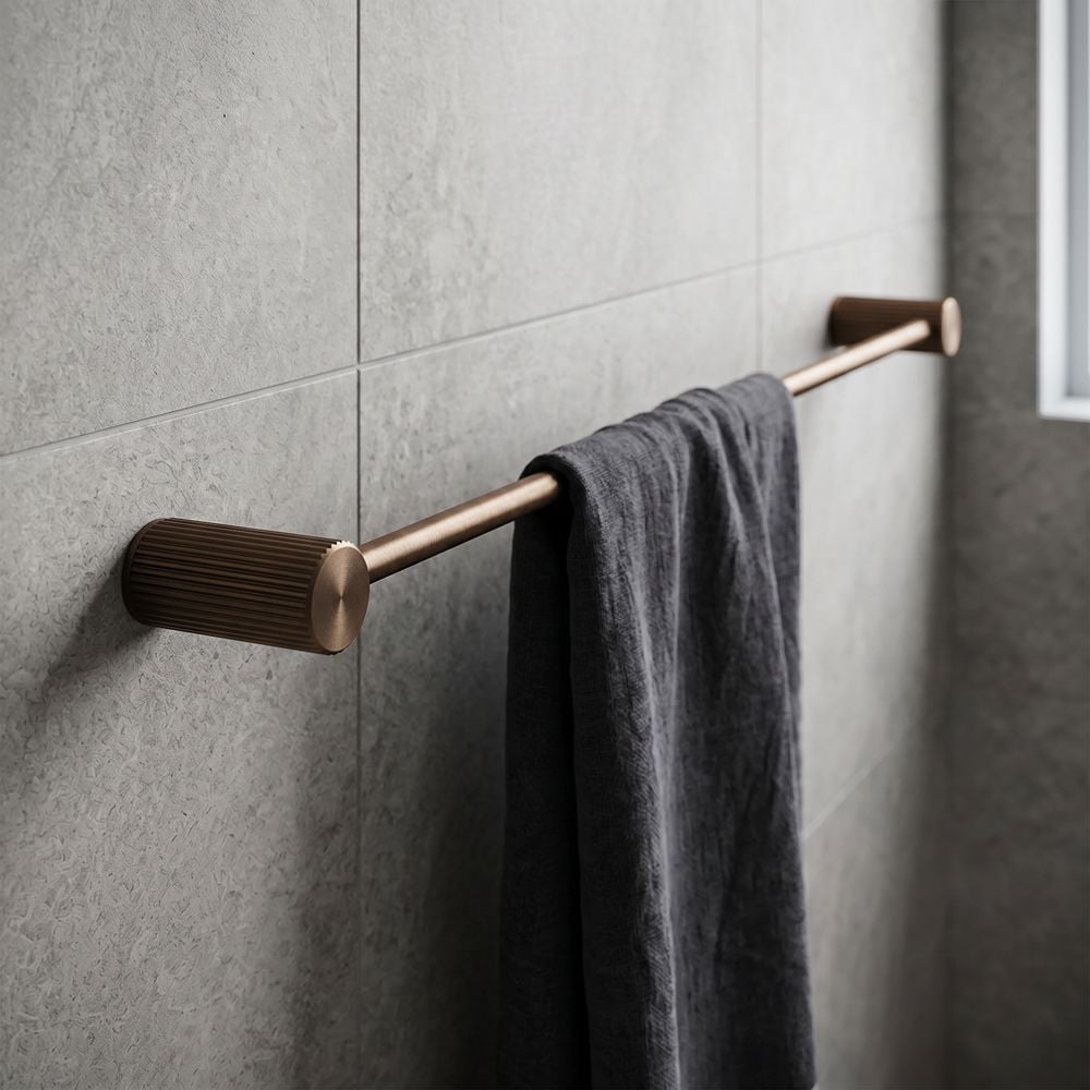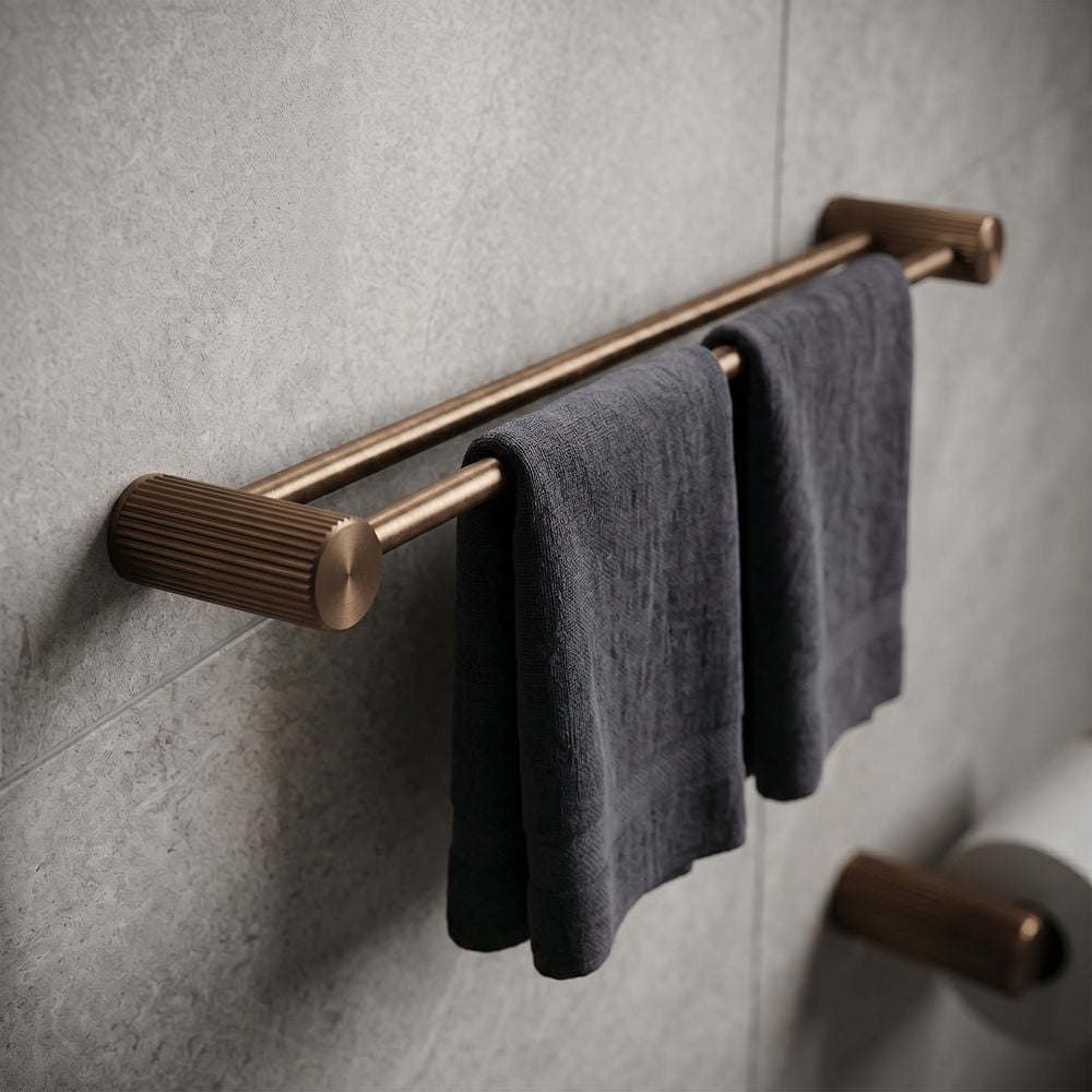 Litchfield Fluted Brushed Bronze Double Towel Bar – Wall Mounted Bathroom Towel Holder