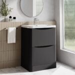 Bella 600mm Matte Grey Floor Standing Vanity Unit & Basin – 2 Drawer Bathroom Unit