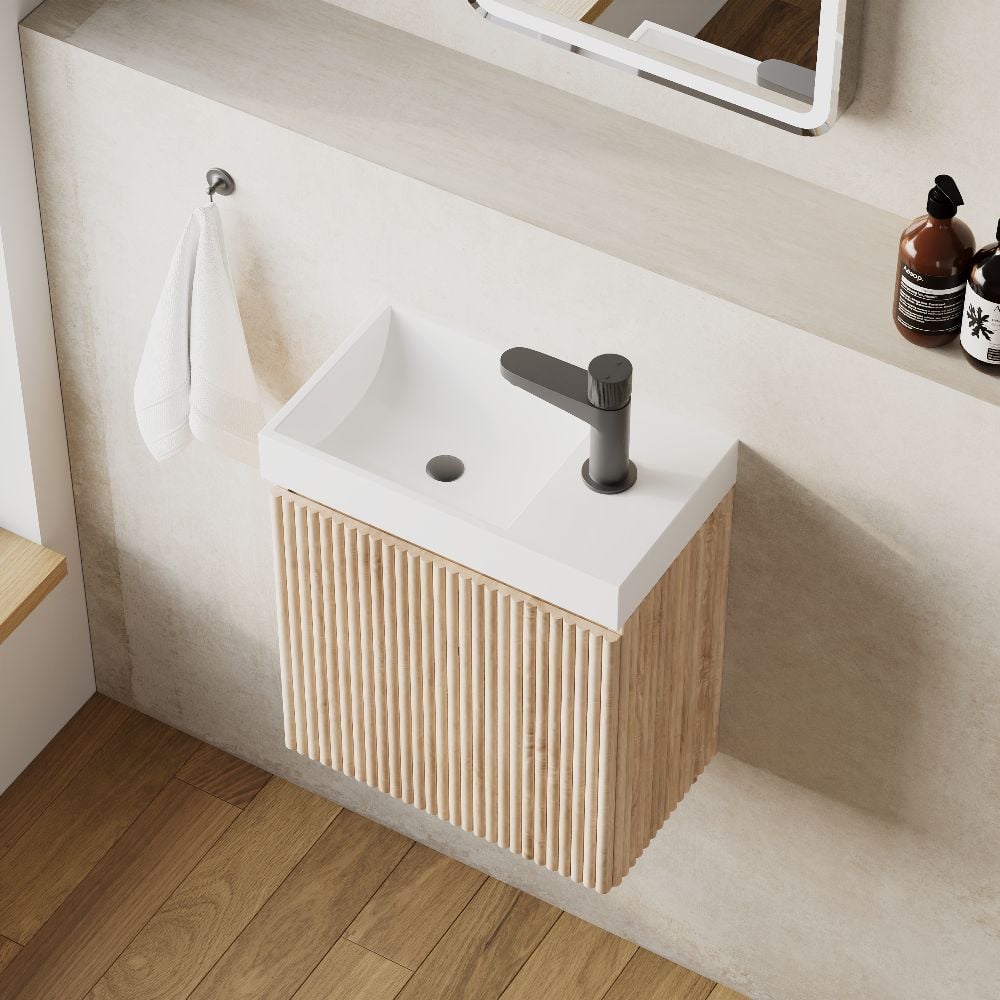 The Linea 400mm Sonoma Oak Cloakroom Unit & Basin blends smart storage with contemporary design, delivering a highly functional furniture solution for compact bathrooms, cloakrooms and ensuite spaces. Finished in a warm Sonoma Oak, this wall-mounted unit adds natural wood-tone warmth to modern interiors while keeping clutter under control.