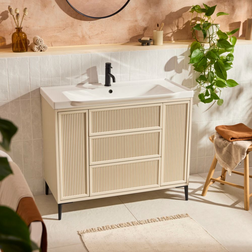 • 1000mm wide fluted vanity cabinet – bold and spacious.