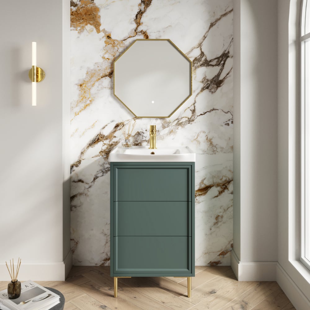 The Bota 500 mm Floor-Mounted Parisian Green Vanity Unit & Basin is a compact and stylish bathroom furniture solution that brings both form and function to smaller spaces. Finished in a rich Parisian Green, this unit creates a refined, sophisticated look that pairs beautifully with brass, black, chrome, or gunmetal fittings and accessories.