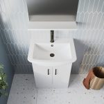 • 550mm gloss white vanity unit with ceramic basin