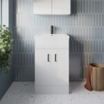 The Lennie 500mm Floor Standing Gloss White Vanity Unit & Ceramic Basin with Black Handles is a contemporary bathroom furniture solution that combines sleek styling with everyday practicality. Finished with a high-gloss white surface and striking black handles, this unit brings a fresh and modern look to bathrooms of all sizes, from compact cloakrooms to family bathrooms.