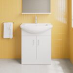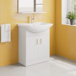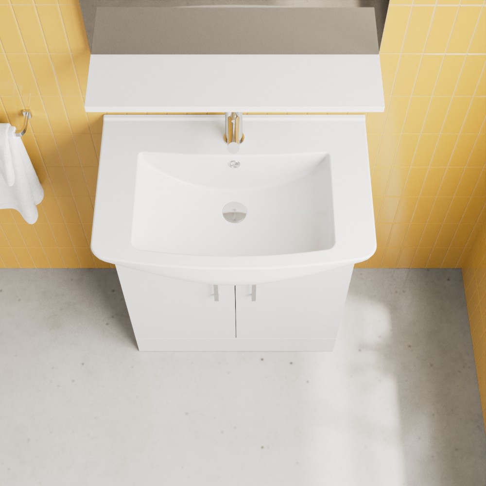 • 650mm gloss white vanity unit with ceramic basin