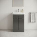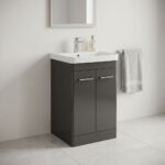 Rossini 600mm Wolf Grey Floor Standing Vanity Unit & Basin – 2 Door Bathroom Unit