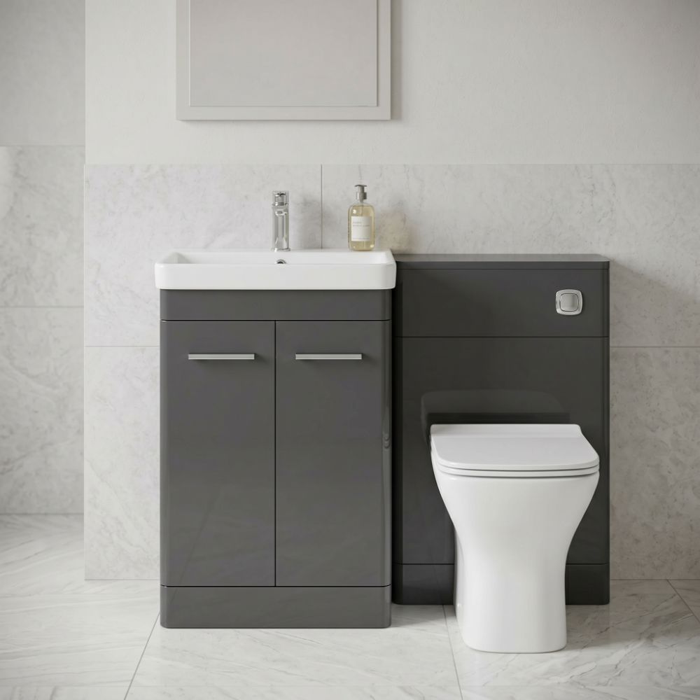 Upgrade your bathroom with the Rossini 600mm wolf grey vanity unit and basin, designed for modern style and everyday storage.