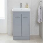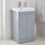 Rossini 600mm Pebble Grey Floor Standing Vanity Unit & Basin – 2 Door Bathroom Unit