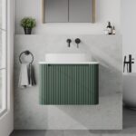 Enhance your bathroom with the luxurious Scudo Linea Curve 600mm Reed Green Wall-Mounted Vanity Unit, combining sleek design, premium materials, and intelligent functionality. The standout feature is the curved, fluted front in a calming reed green finish, which adds texture and sophistication to any modern bathroom décor. Wall-hung for a stylish floating effect, this vanity unit not only saves space but also simplifies cleaning underneath.