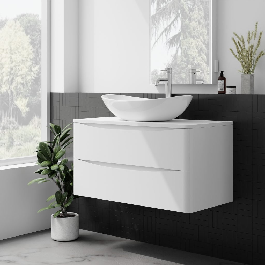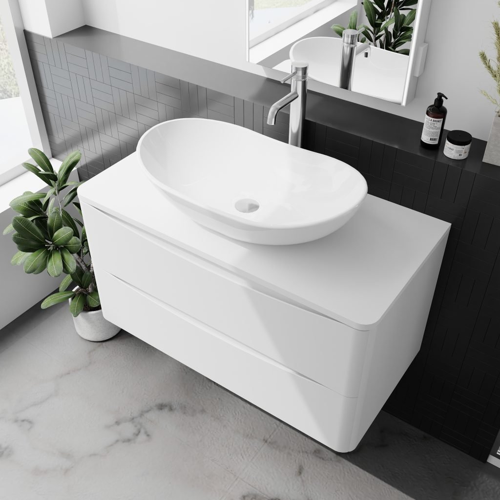 • 900mm gloss white bathroom unit
