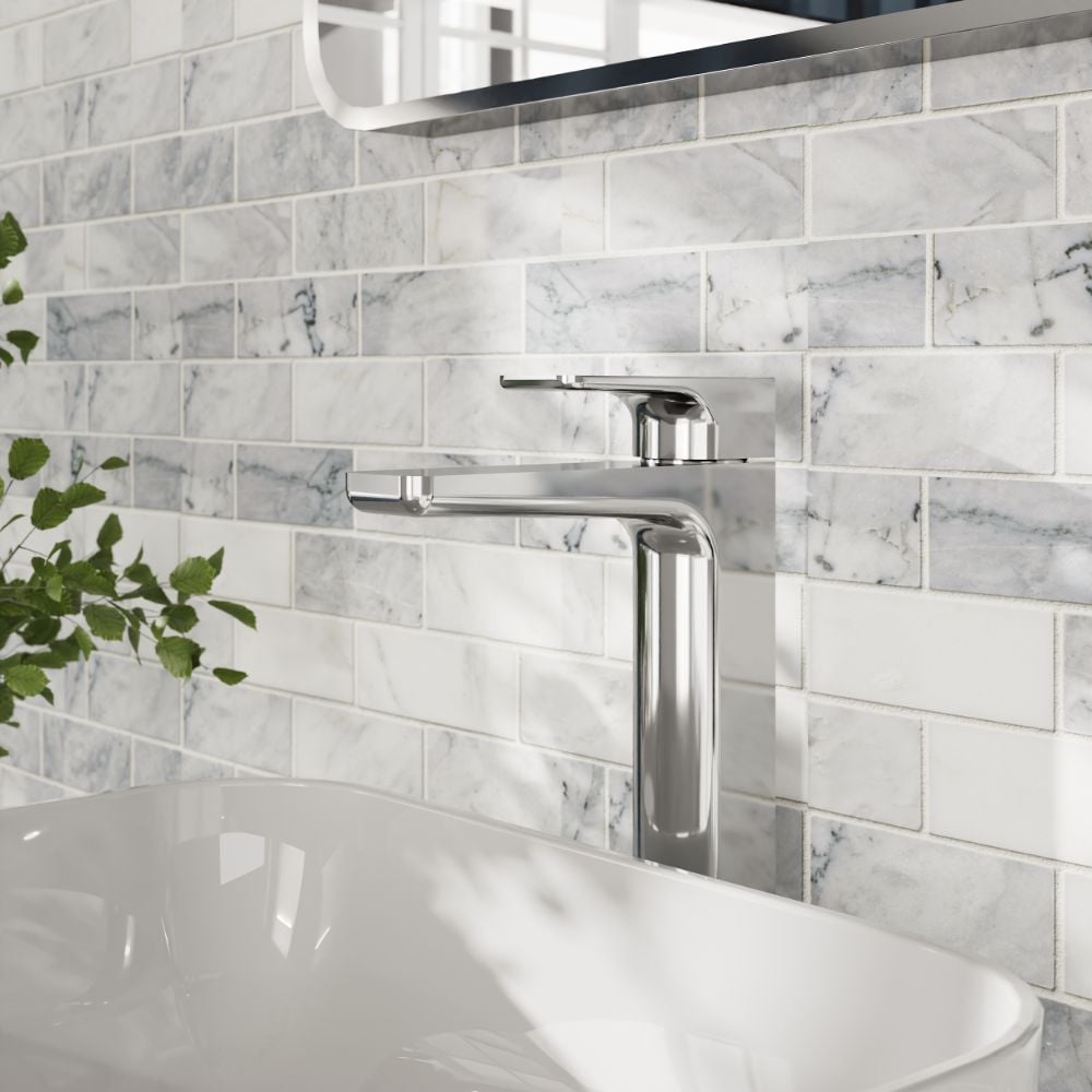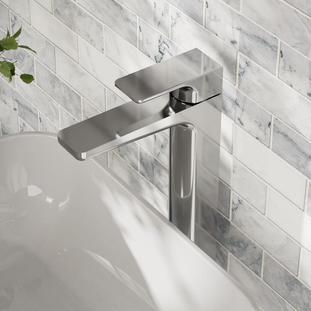 Designed for countertop and vessel basins, the Muro Chrome Tall Basin Mixer Tap delivers lofty elegance and practical reliability: