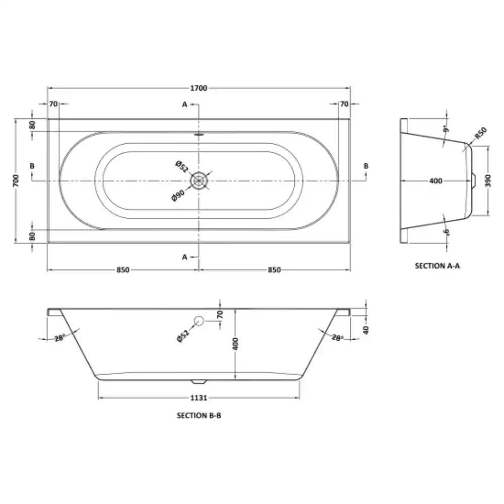 Litchfield Straight 1700 x 700 Double Ended Bath