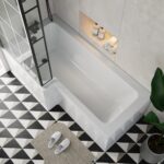 Combining modern design with practical functionality, the Litchfield 1700mm L-Shaped Shower Bath with Matt Black Grid Screen is a stylish and space-efficient solution for contemporary bathrooms.