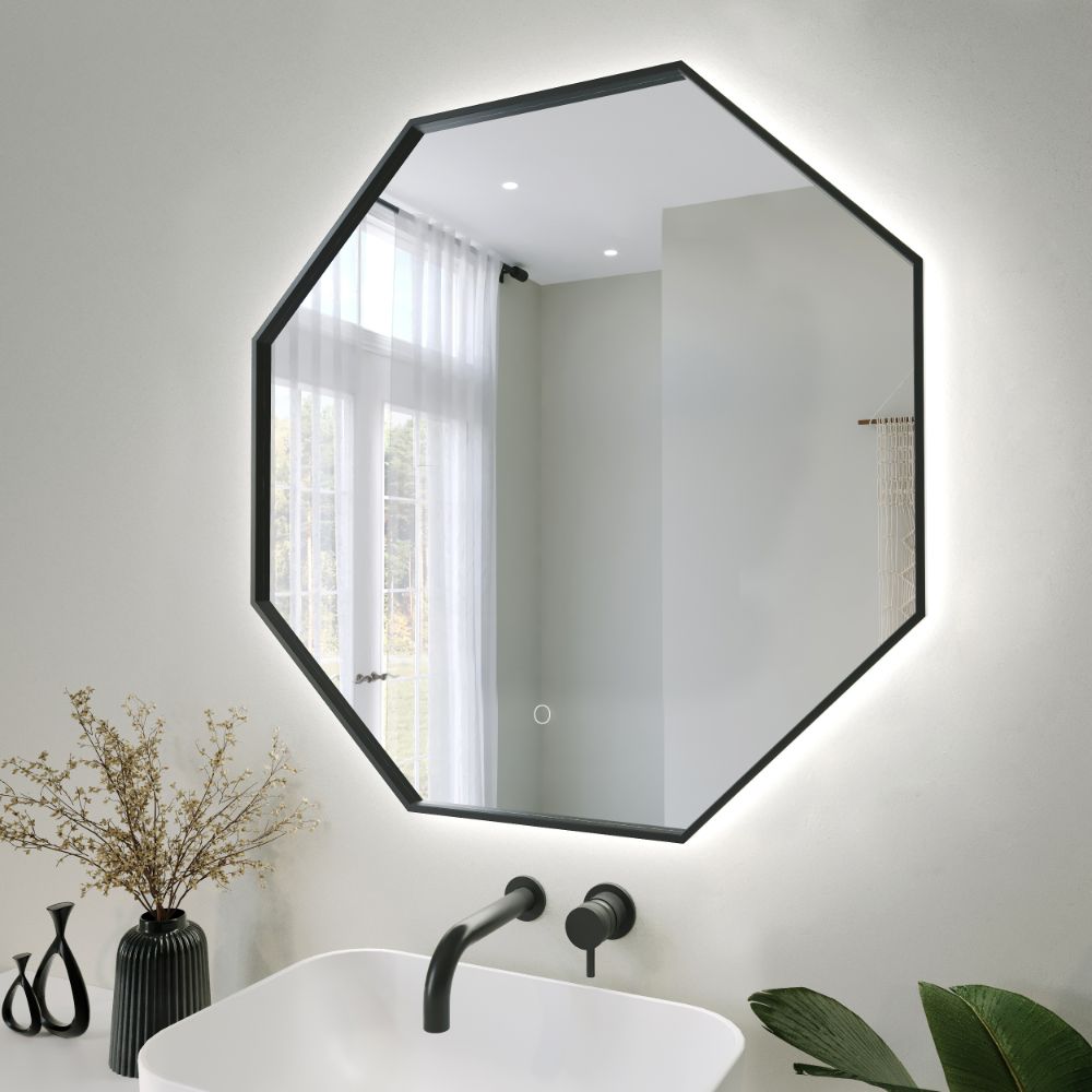 Passa Matte Black Hexagonal LED Illuminated Mirror With Built In Demister Pad – 800mm