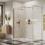 Create a bold, architectural walk-in enclosure with the Litchfield Oro Brushed Brass 2 Panel Walk-In Shower Enclosure, designed for luxury bathrooms that demand structure, symmetry and presence.