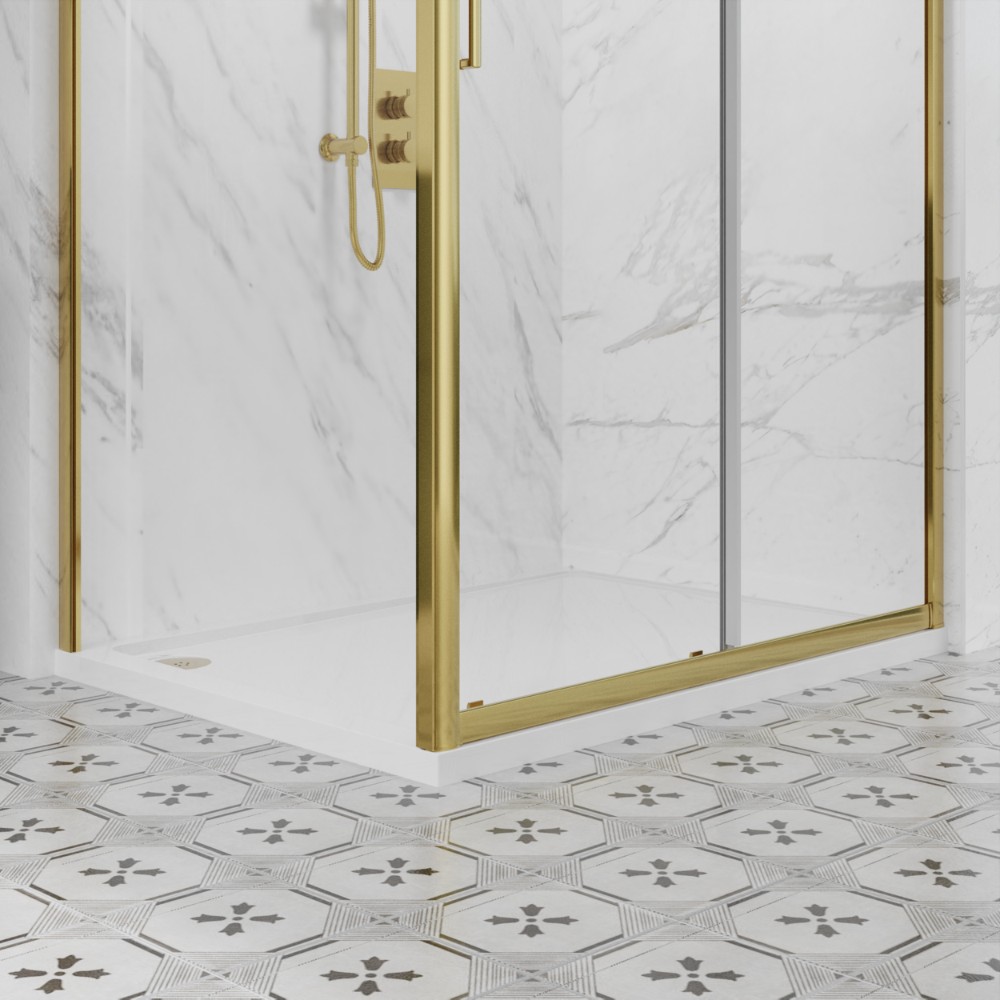 Whether renovating or specifying a new shower space, the Litchfield i6 Brushed Brass 1200mm Sliding Shower Door offers flexibility, quality and premium styling.