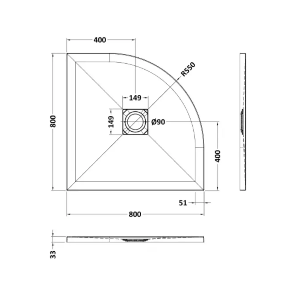 - 800 x 800mm black slate quadrant shower tray