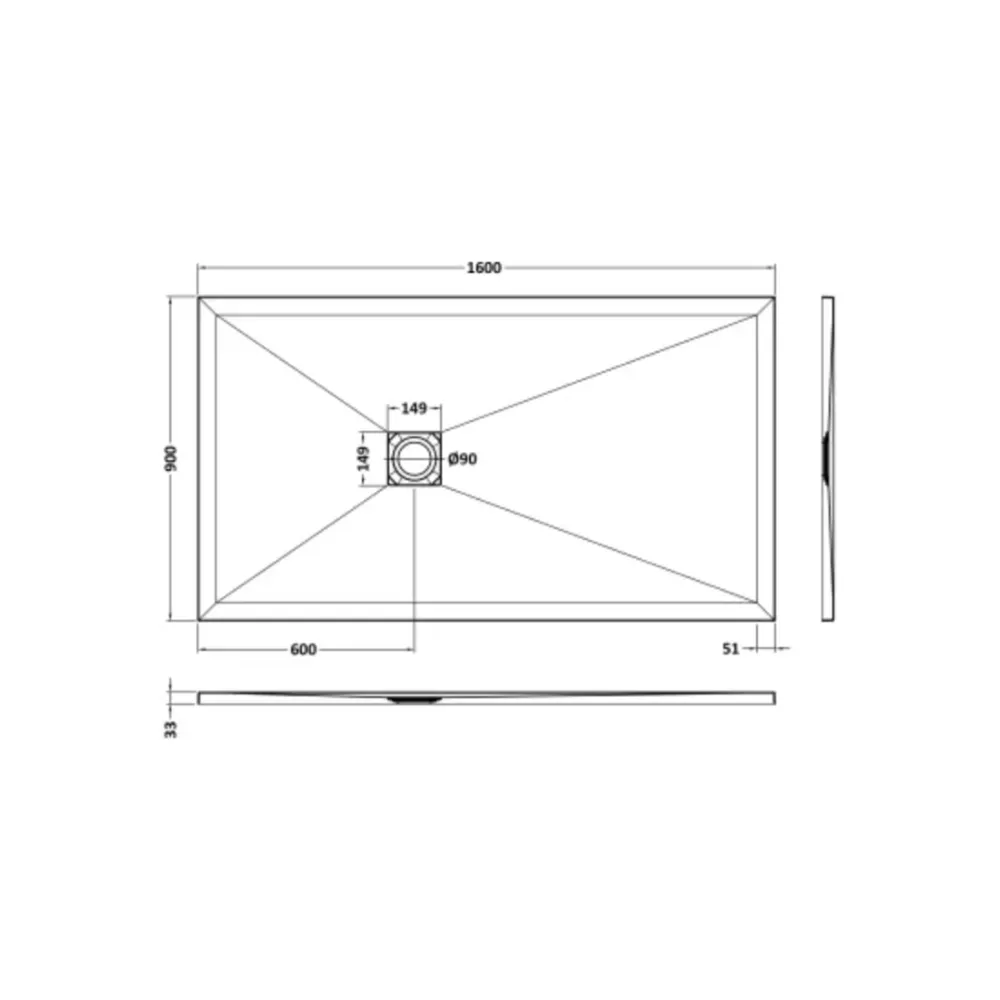 Rectangular Black Slate Shower Tray 1600 x 900mm – Slimline Low Profile Base