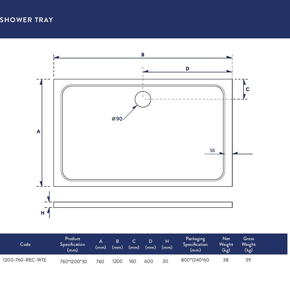 The 1200 x 760mm rectangular size is perfect for narrower bathroom layouts, offering a generous length for comfortable showering while maintaining a compact width to suit tighter spaces.
