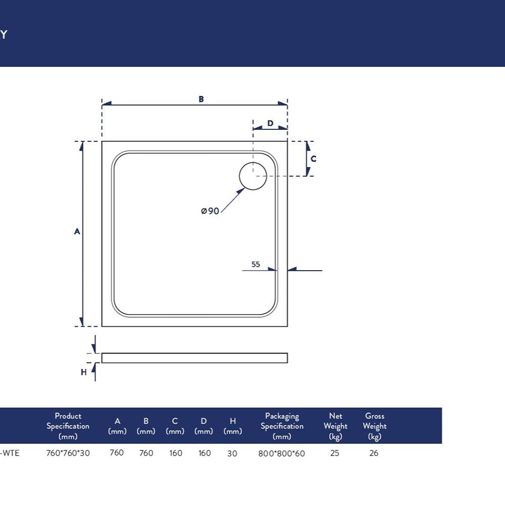 The 760 x 760mm square size is perfect for smaller enclosures and bathrooms with limited space, offering a practical solution without compromising usability.