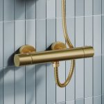 Experience the ultimate in luxury with the Tailored Exposed Thermostatic Bar Valve and Riser Set in Brushed Brass. This exceptional product guarantees a superior showering experience. experience.