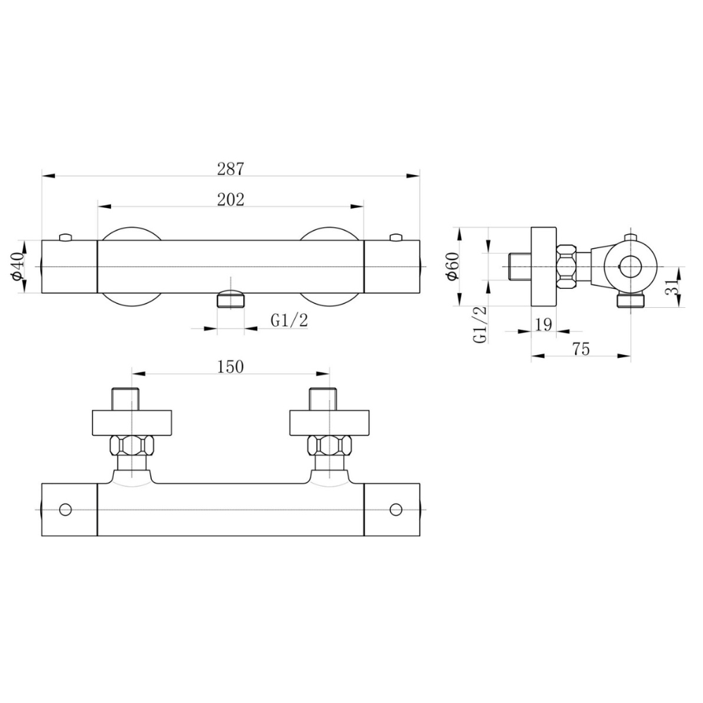 • Thermostatic Bar Valve – This Shower valve maintains a consistent water temperature for a comfortable showering experience, preventing sudden changes in hot or cold water.