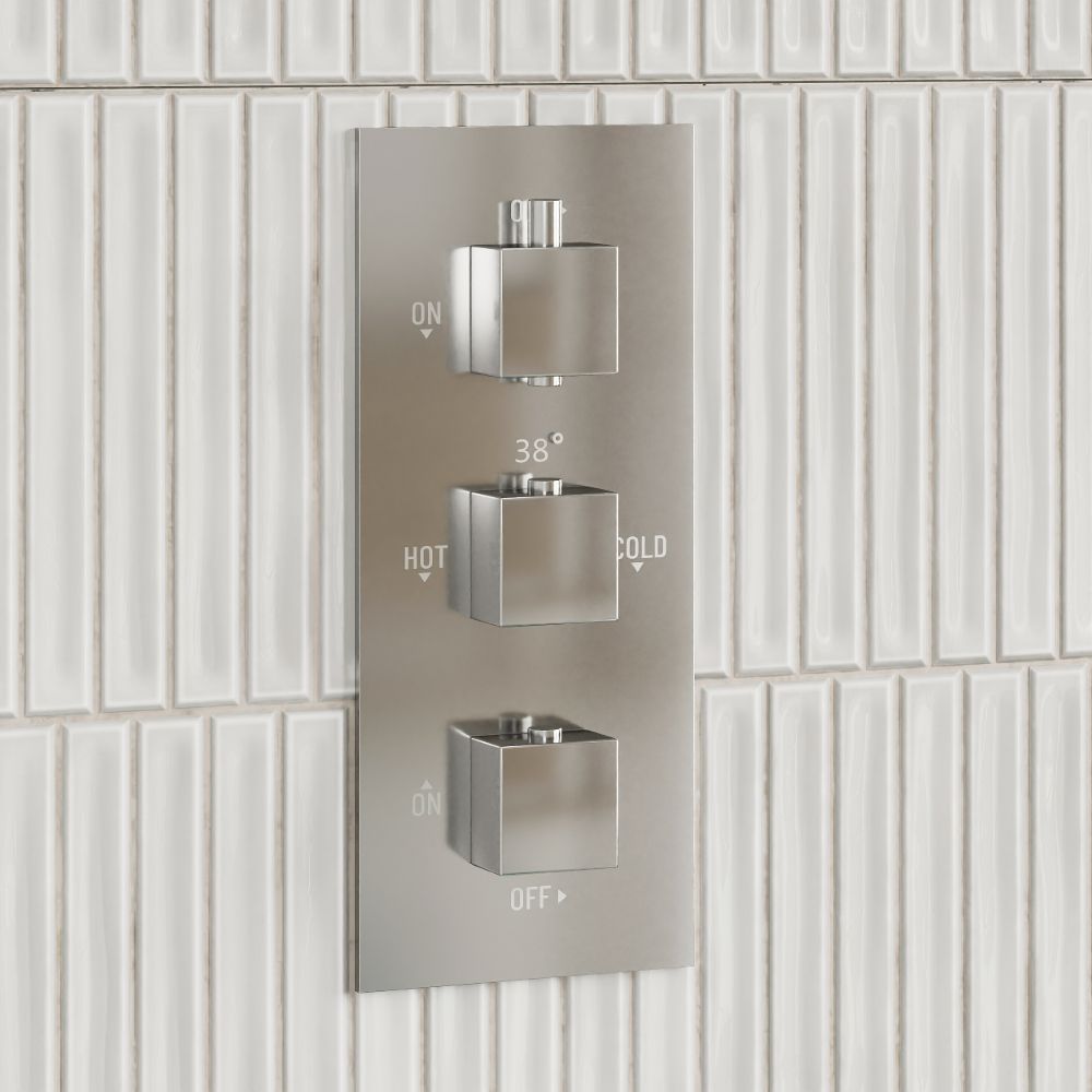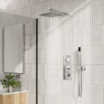 The Scudo Chrome Thermostatic Two Outlet Concealed Square Shower, including a Fixed Head & Handset, is a modern and stylish addition to your bathroom. This shower set features a sleek square design that adds a contemporary touch to any space. The set includes a 200mm rain head, providing a luxurious and refreshing shower experience. With its thermostatic control, you can easily adjust the water temperature to your desired level, ensuring a comfortable and safe shower every time. The two outlets allow you to switch between the rain head and another shower function, giving you versatility and convenience. This shower set offers functionality and style and comes with a Lifetime guarantee, giving you peace of mind and assurance of its quality. Upgrade your bathroom with the Tailored Chrome Two Outlet Thermostatic Concealed Square Shower Set and enjoy a modern and luxurious shower experience.