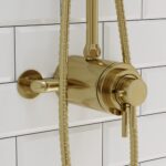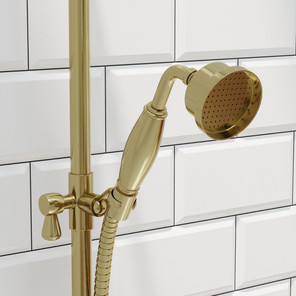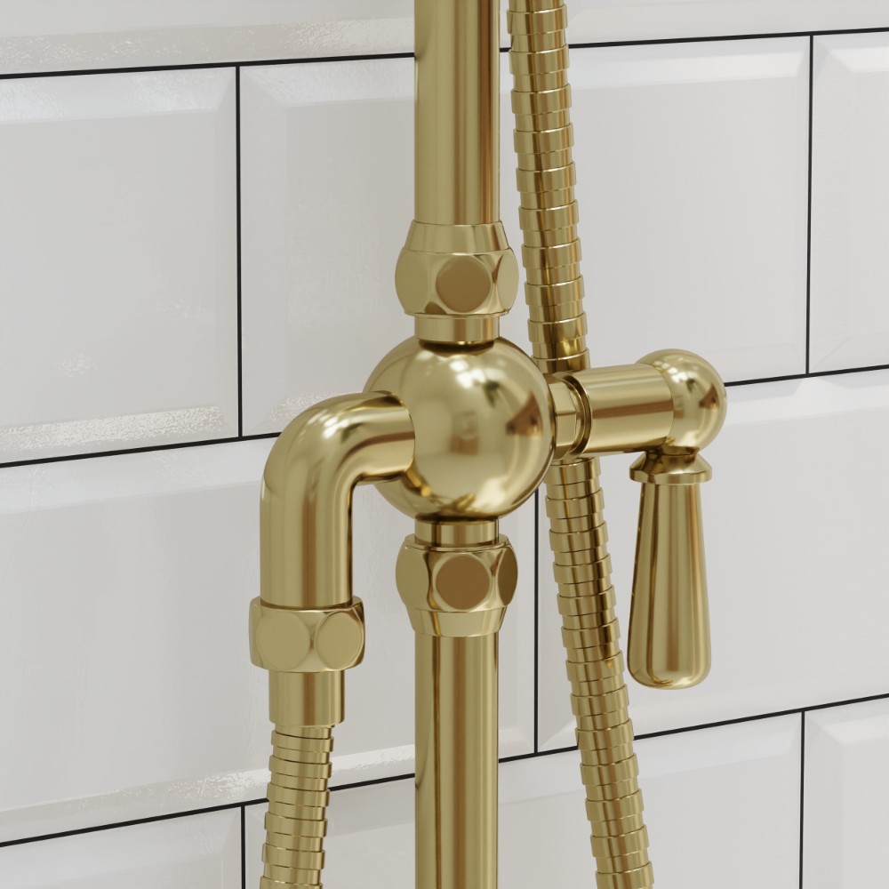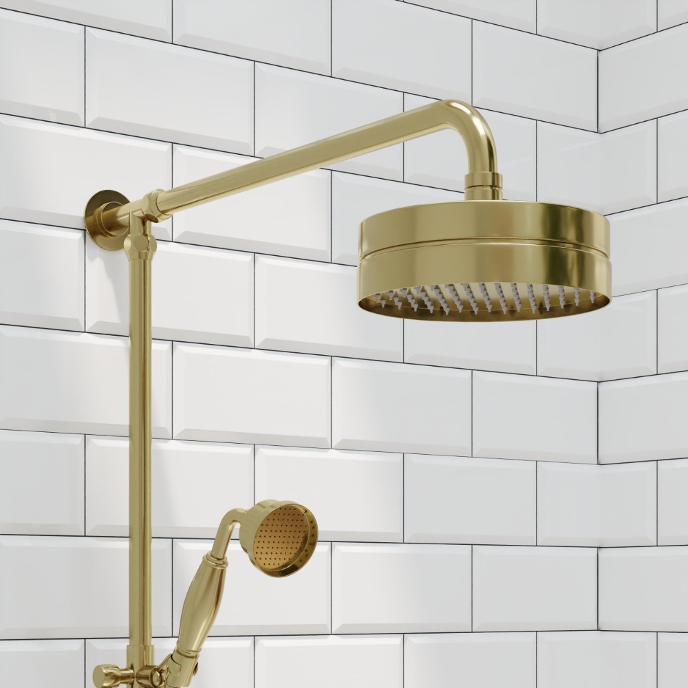 The Beaumaris Modern Traditional Brushed Brass Shower, expertly crafted by Tailored Bathrooms, is designed to effortlessly complement modern and traditional bathroom settings. It features an elegant appearance and a luxurious 200mm rain can shower head, making it a visually stunning focal point and providing a blissful shower experience. The shower incorporates advanced anti-scald technology through its thermostatic shower valve, ensuring a safe and comfortable showering experience for all users. Additionally, the shower includes a convenient single-setting smaller shower head, adding further versatility to meet individual preferences.