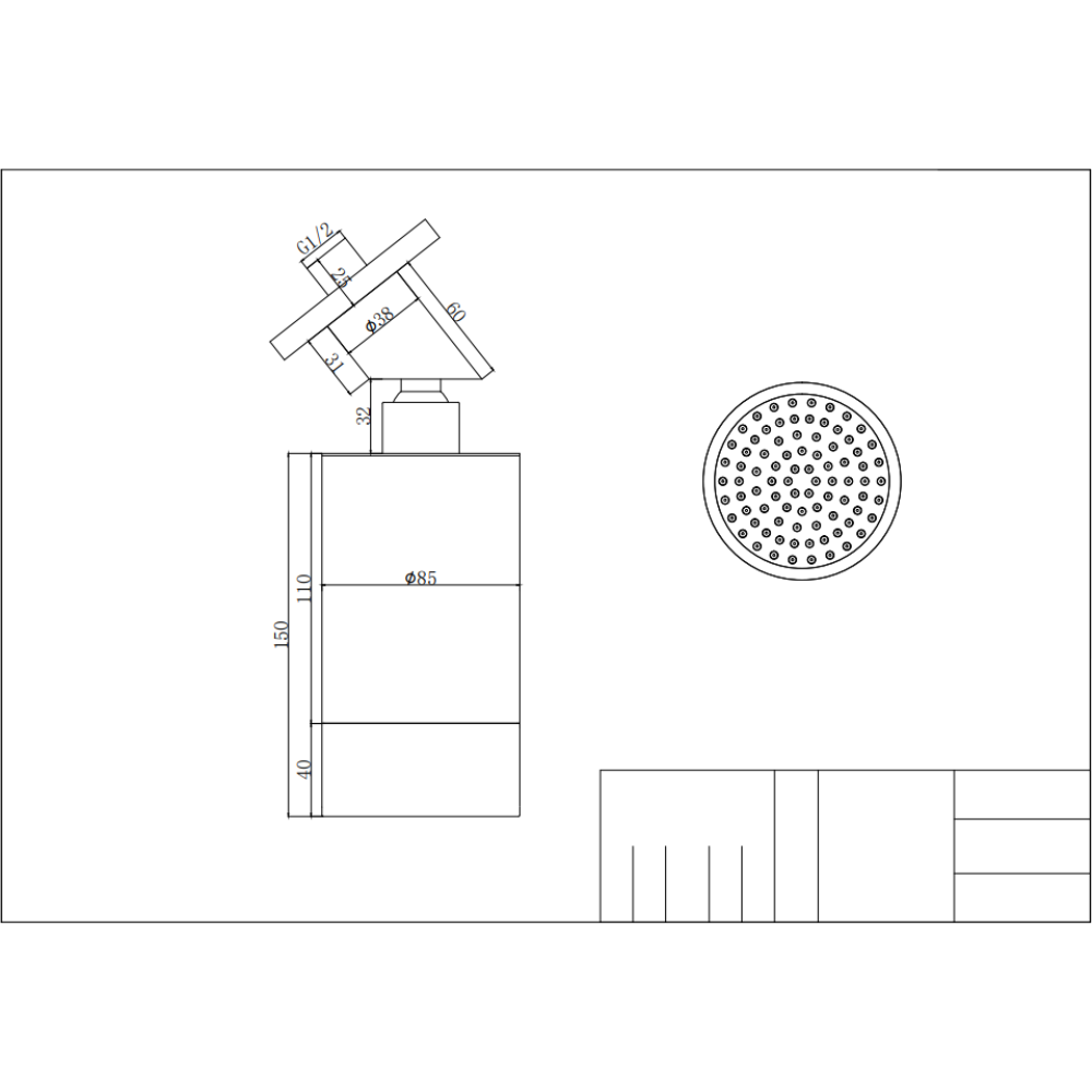 This compact spotlight-style shower head features an 85mm diameter, delivering a focused and controlled spray. Unlike large rainfall heads, it offers a more directed water flow, making it ideal for dual outlet shower setups, typically used alongside a handset for versatility.