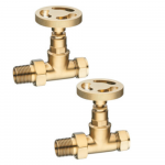 Brushed Brass Industrial Wheel Head Straight Radiator Valves (Pair)
